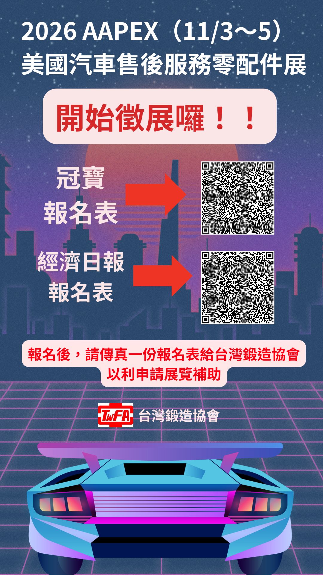 2026美國AAPEX汽車及零配件展 開始徵展囉!!!