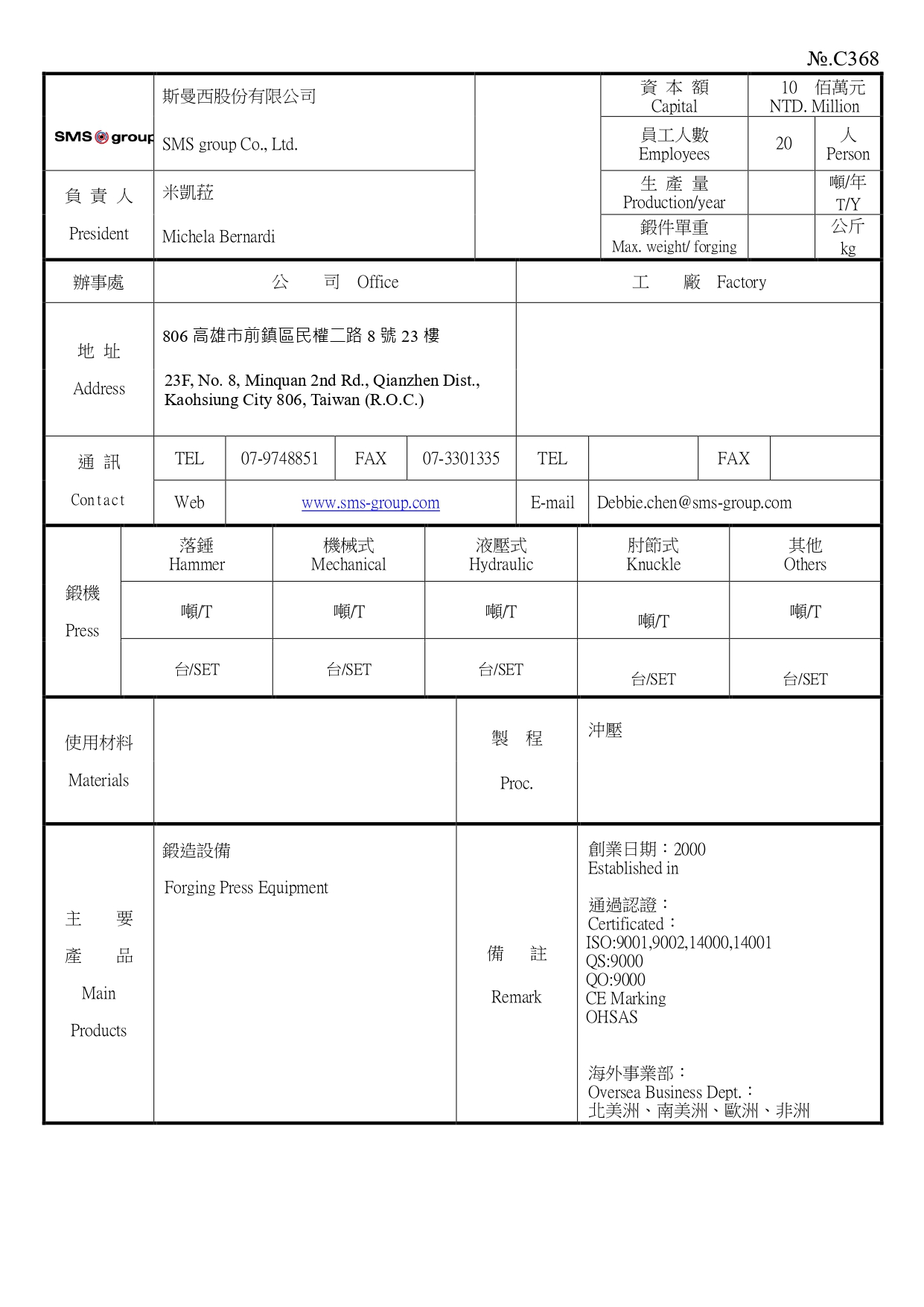 23F, No. 8, Minquan 2nd Rd., Qianzhen Dist., Kaohsiung City 806, Taiwan (R.O.C.)